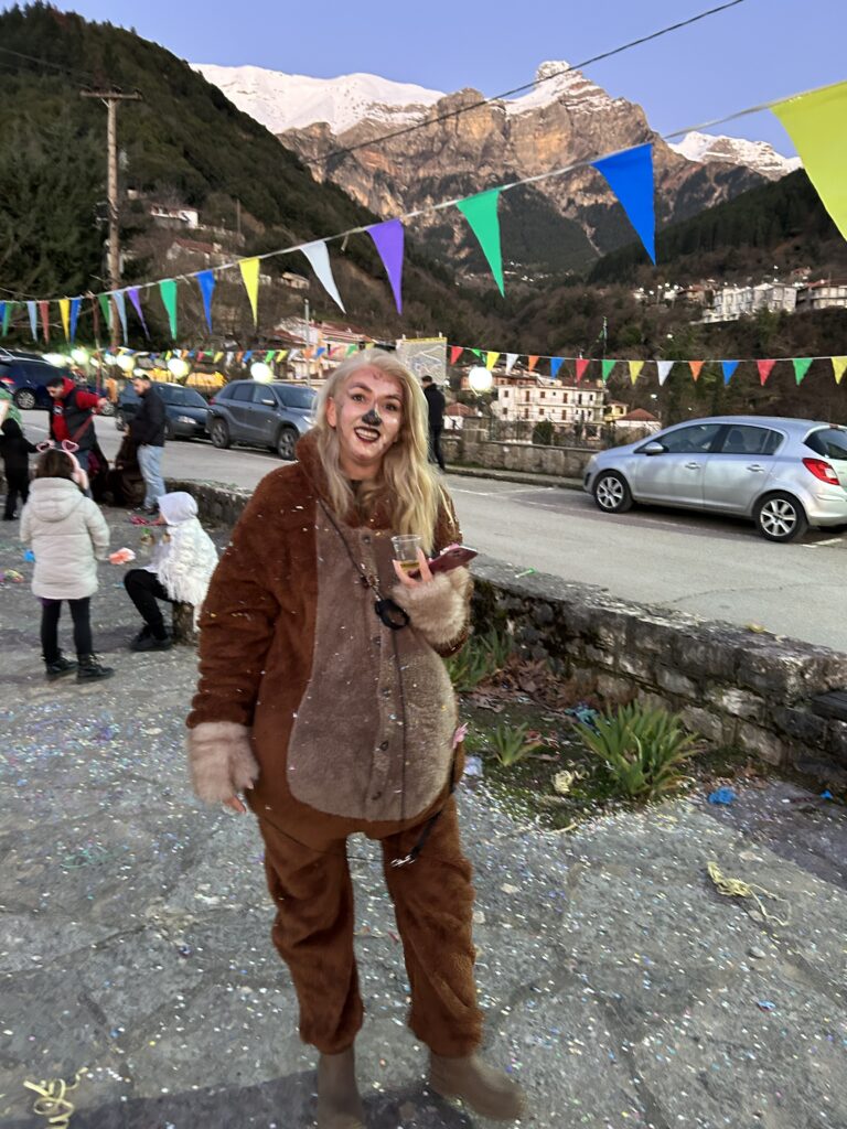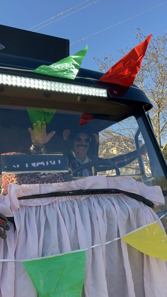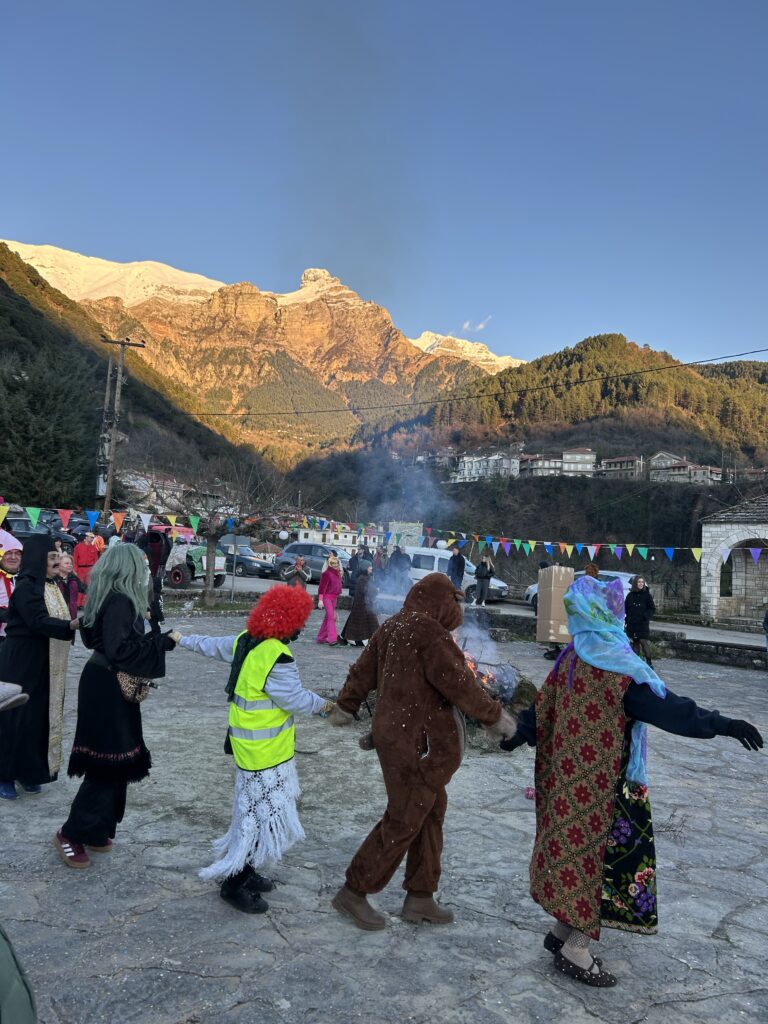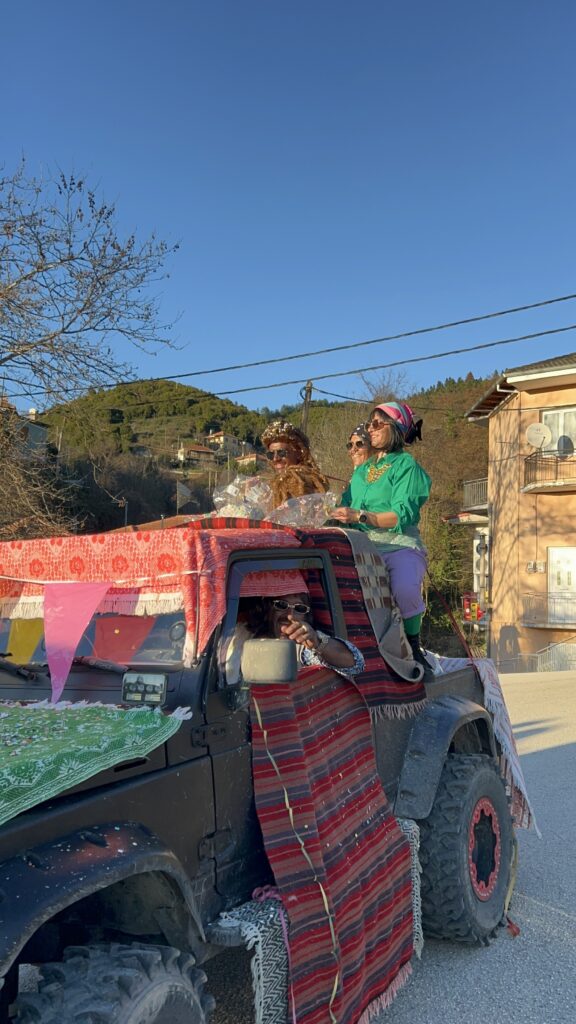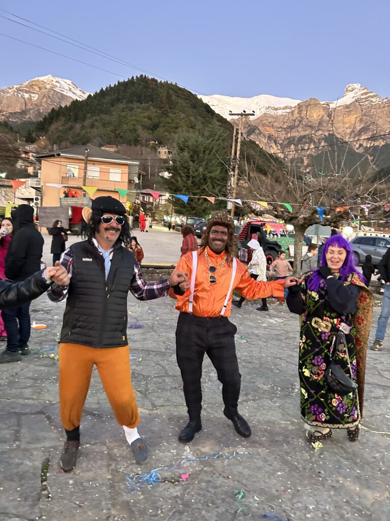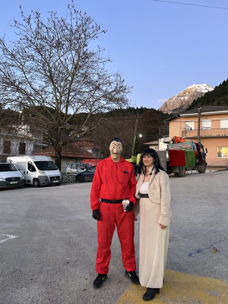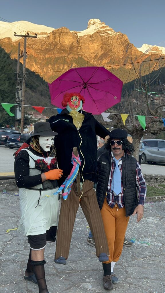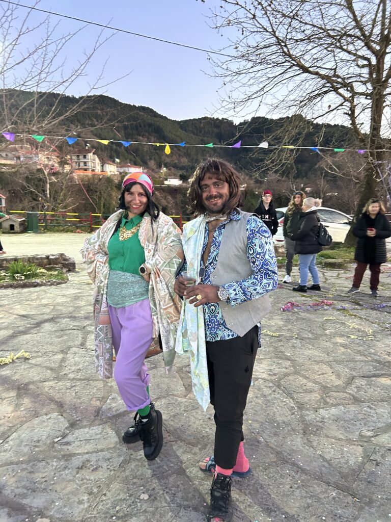 Κατά την παραμονή μας στην πλατεία, ως Αδελφότητα μοιράσαμε στους παρευρισκόμενους αποκριάτικα αξεσουάρ, σερπαντίνες, κομφετί και καραμούζες, ώστε όλοι —μικροί και μεγάλοι— να μπουν στον εορταστικό ρυθμό.